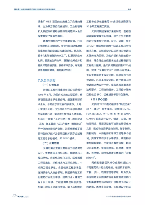 白皮書中在《中國生物制藥產線設計與集成以及智能化轉型》一章節中,選取天俱時集團為典型公司進行案例分析,肯定了天俱時在生物制藥產線設計與集成方面的相關優勢及取得成果。