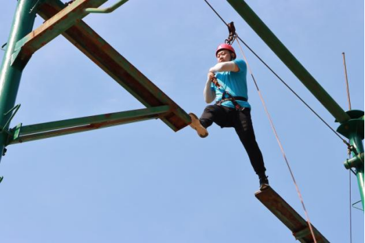 素質拓展中最具挑戰(zhàn)性的活動,非“信任背摔”和“高空斷橋”莫屬。6月25日上午,新員工們在教官的組織下開始了對自我的突破和挑戰(zhàn)。在“信任背摔”環(huán)節(jié)中,新員工們依次從1.4米的背摔臺上直身向后倒下,一雙雙有力的臂膀此時就成為了支撐自身倒下的依靠。而當大家來到“高空斷橋”的現場,8米的高臺讓很多人都產生了退縮的想法,但是伴隨著一句又一句的“加油”、“相信自己”的話語,新員工們都克服了自身的恐懼,堅實地邁出了這一步。