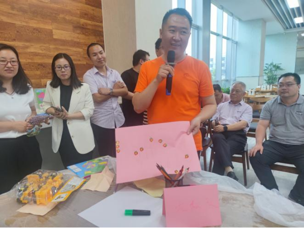 活動伊始,入職三、五、十周年的員工被隨機分成了不同的小組,用畫筆紛紛描繪出自己在天俱時的精彩瞬間以及對天俱時未來的展望。有的小組將彼此的人物形象畫在紙上并圍成了一個圈,表達出我們從五湖四海而來,因天俱時相遇相知,彼此成為人生旅途中最好的伙伴;也有的小組將天俱時描繪成一輛正在加速向前的汽車,不停探尋未來的方向。