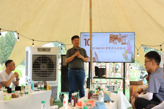飛盤嘉年華活動結(jié)束后,2024屆天俱時10+學(xué)生會入會儀式隆重舉行,伴隨著全新的會員手冊及優(yōu)美的會歌旋律,天俱時集團董事長,10+學(xué)生會名譽主席劉金濤進行開幕致辭。他首先表示天俱時10+學(xué)生會成員既是企業(yè)業(yè)務(wù)的精英,更是企業(yè)文化傳承的載體。作為10+學(xué)生會的一員,他倍感自豪。之后,他從天俱時的組織建設(shè)理念、業(yè)務(wù)經(jīng)營新模式等方面進行了詳細地介紹,并表示所有10+學(xué)生會成員都是未來天俱時前行中的主角,希望與大家一同發(fā)光發(fā)熱,為共同的事業(yè)而奮斗。