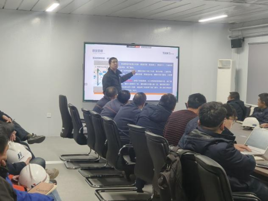 近日,甘肅巨化高性能硅氟新材料一體化項目土建工程已進入收尾階段,即將全面轉入安裝施工關鍵期。甘肅巨化西部管理團隊始終將工程質量與標準化建設置于核心地位,為確保安裝階段施工標準統一、質量全程可控,邀請天俱時集團面向項目各標段工程團隊、監理單位及業主管理部門,組織開展安裝施工質量樣板專題分享與標準宣貫,天俱時甘肅巨化項目總指揮張帥進行系統講解。